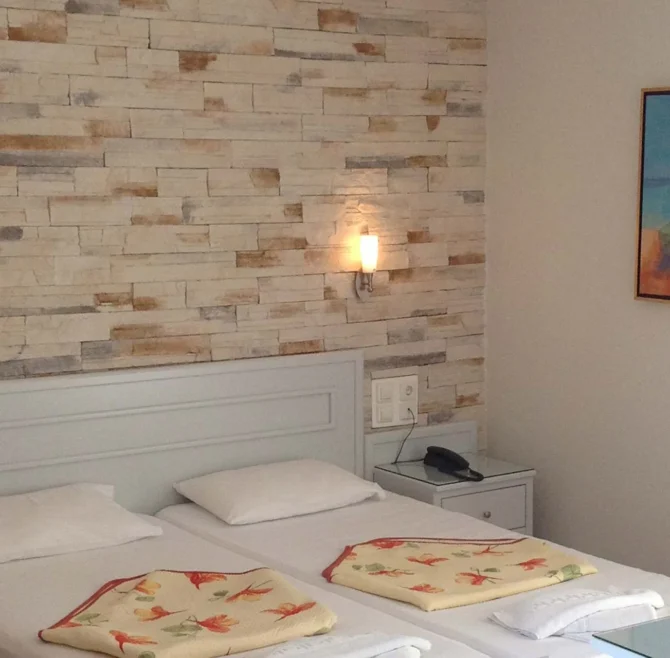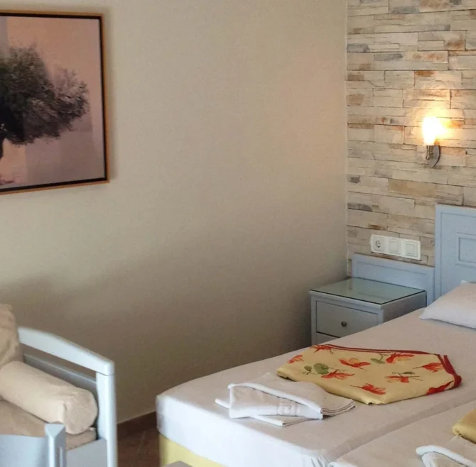 The Standard Double Room has an area of 20 sq.m. and a lovely balcony with sea views.